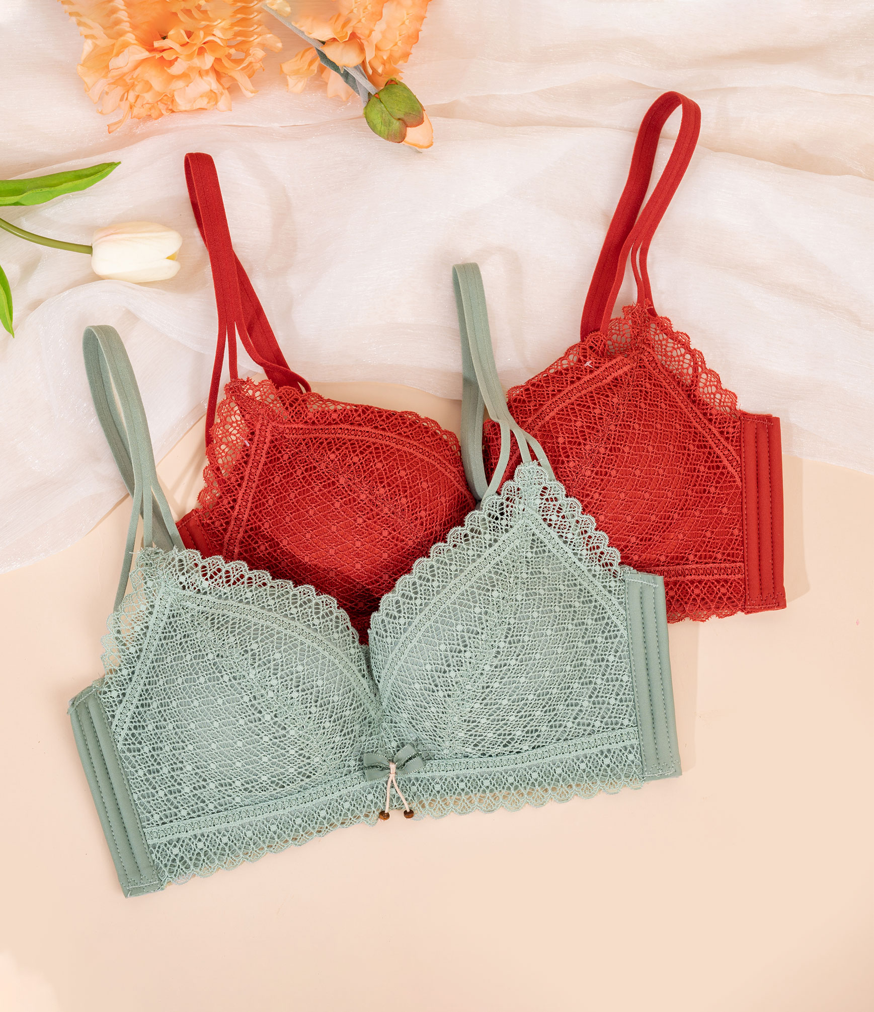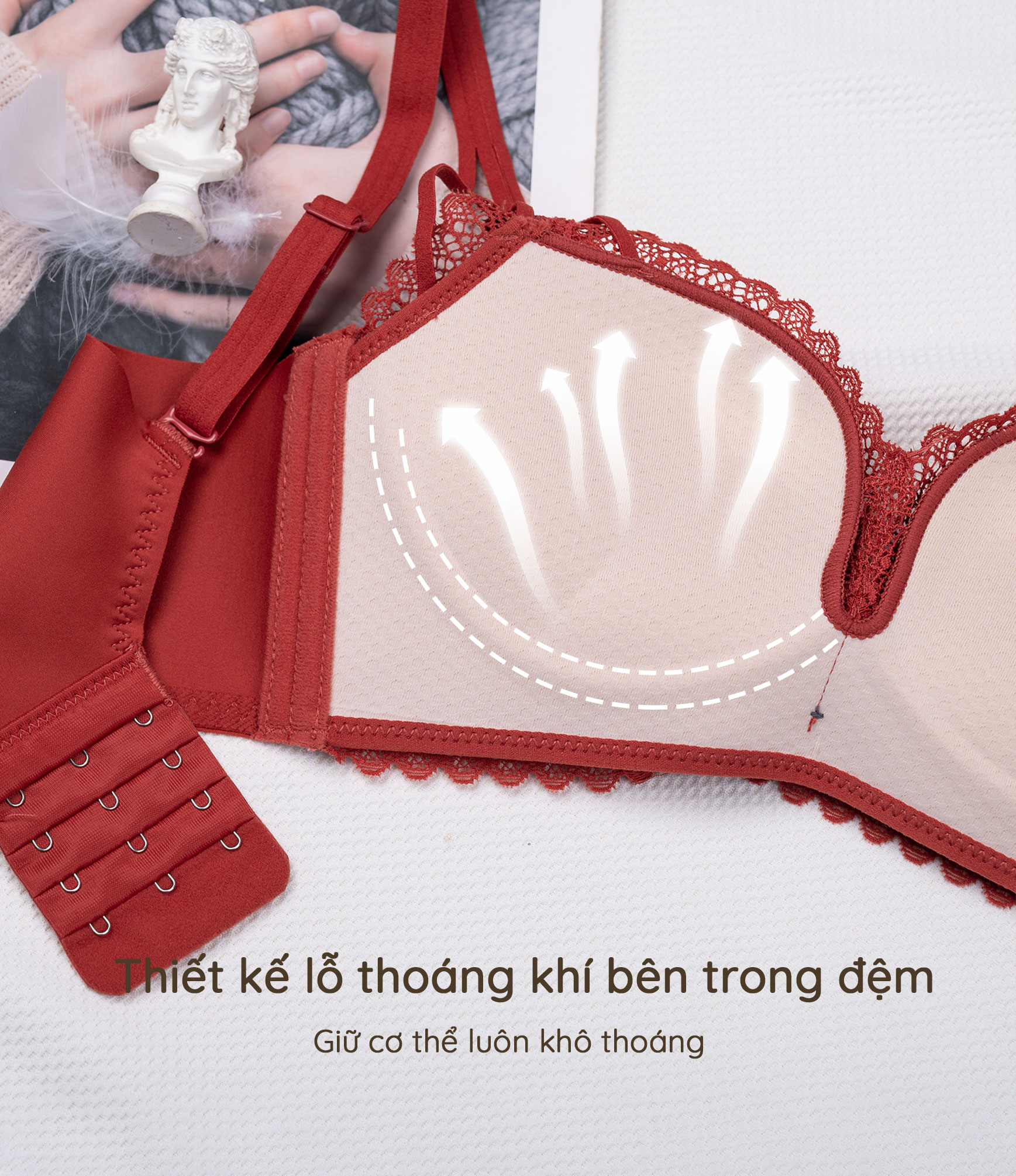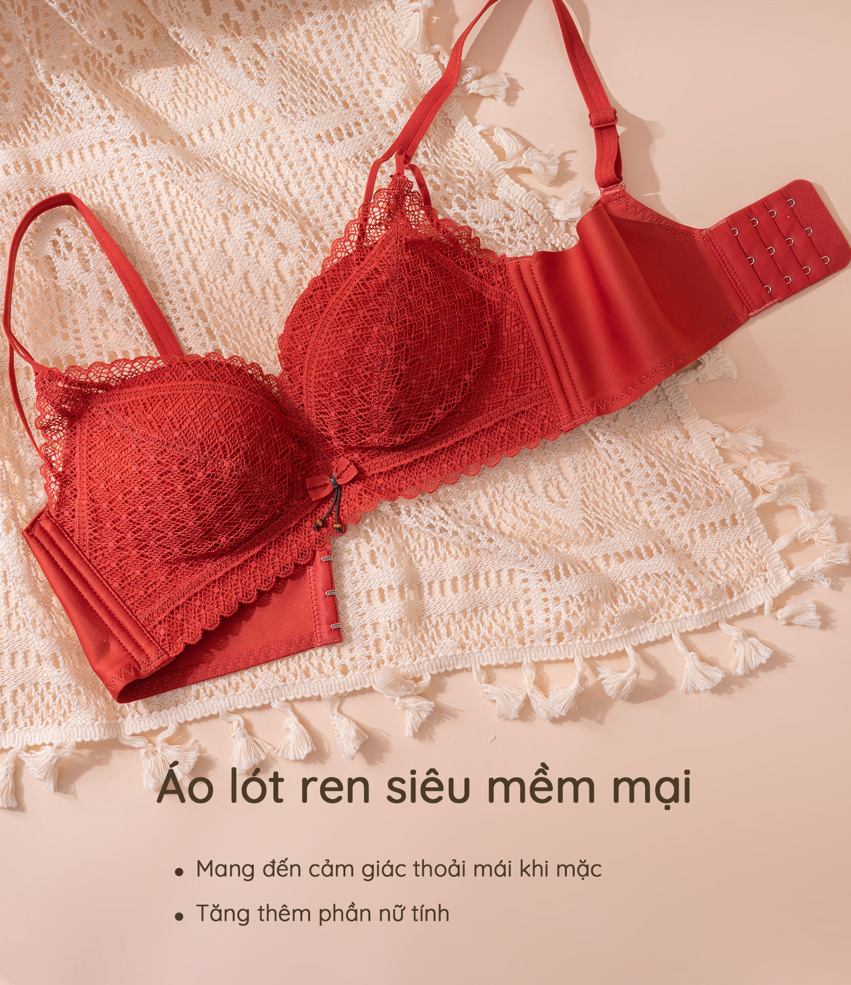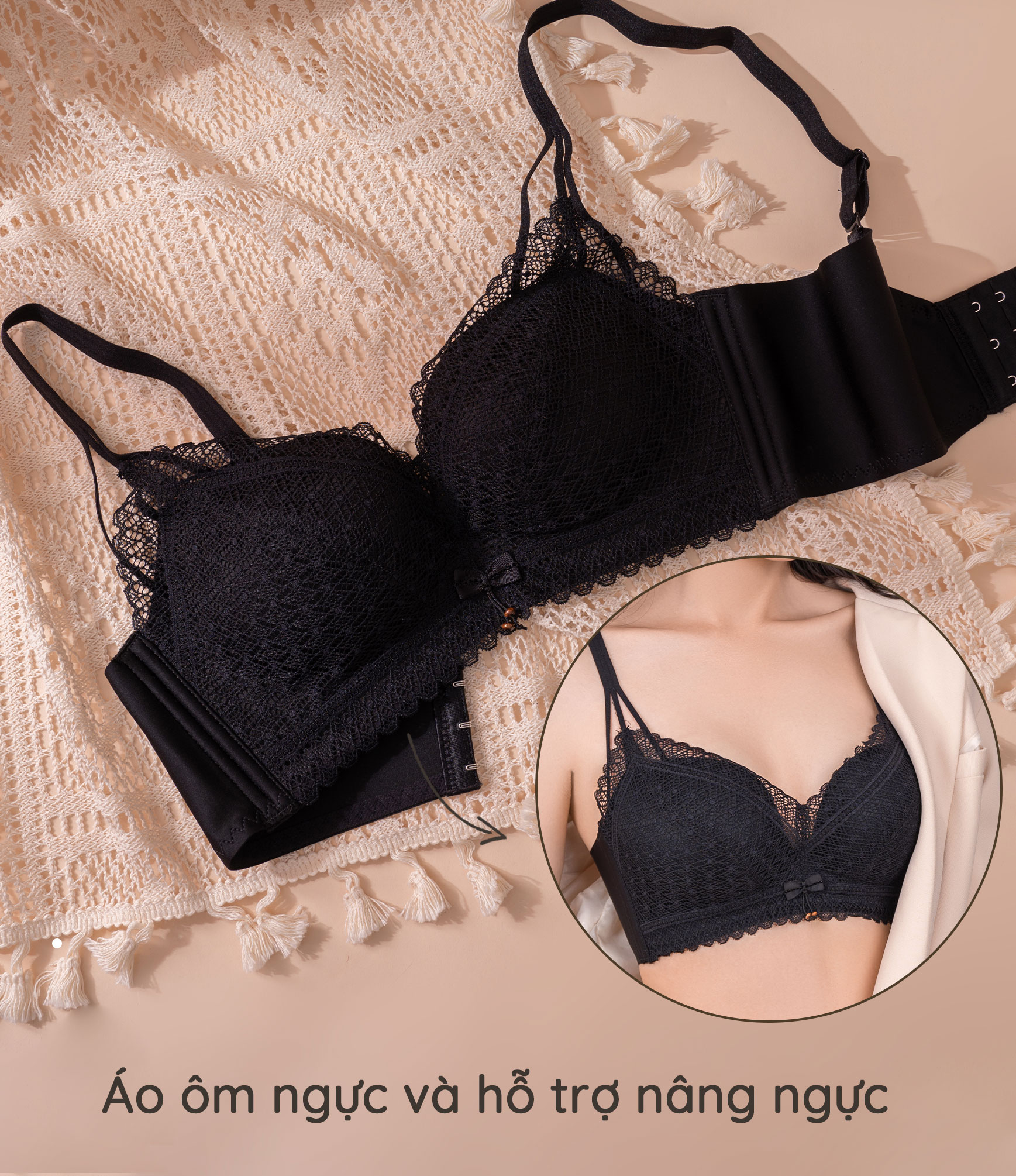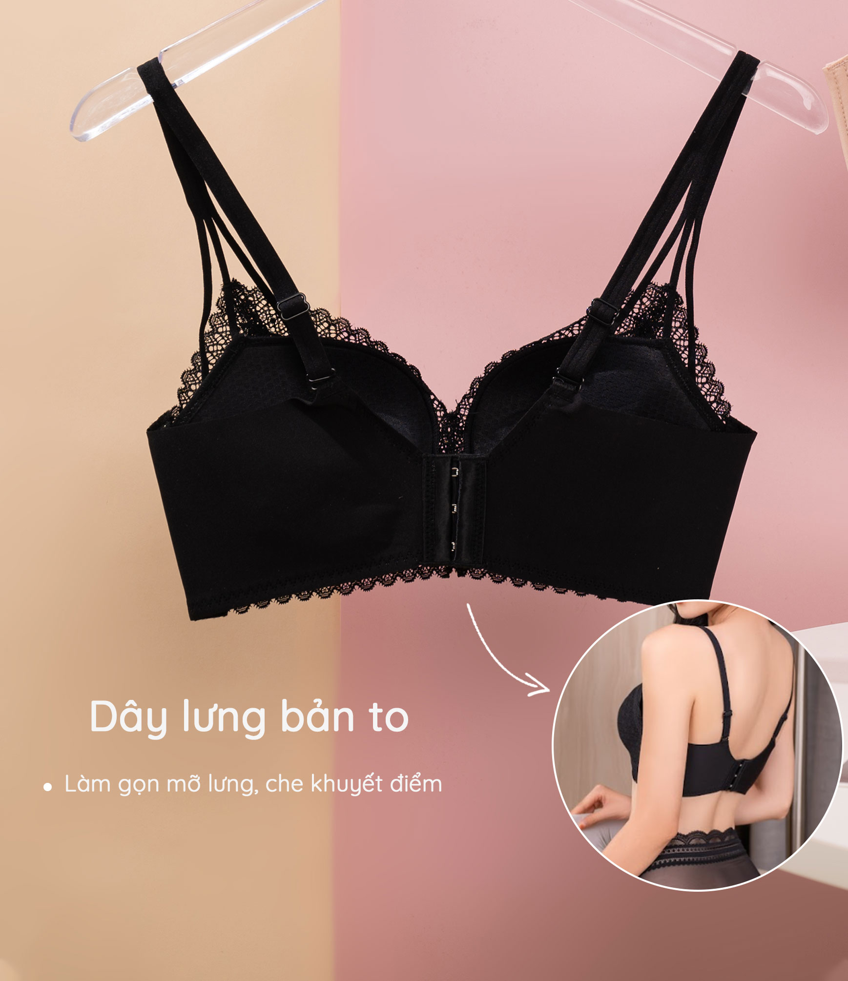 Thiết kế ấn tượng trên chiếc áo lót ren nữ không gọng nâng ngực tạo khe tự nhiên S381