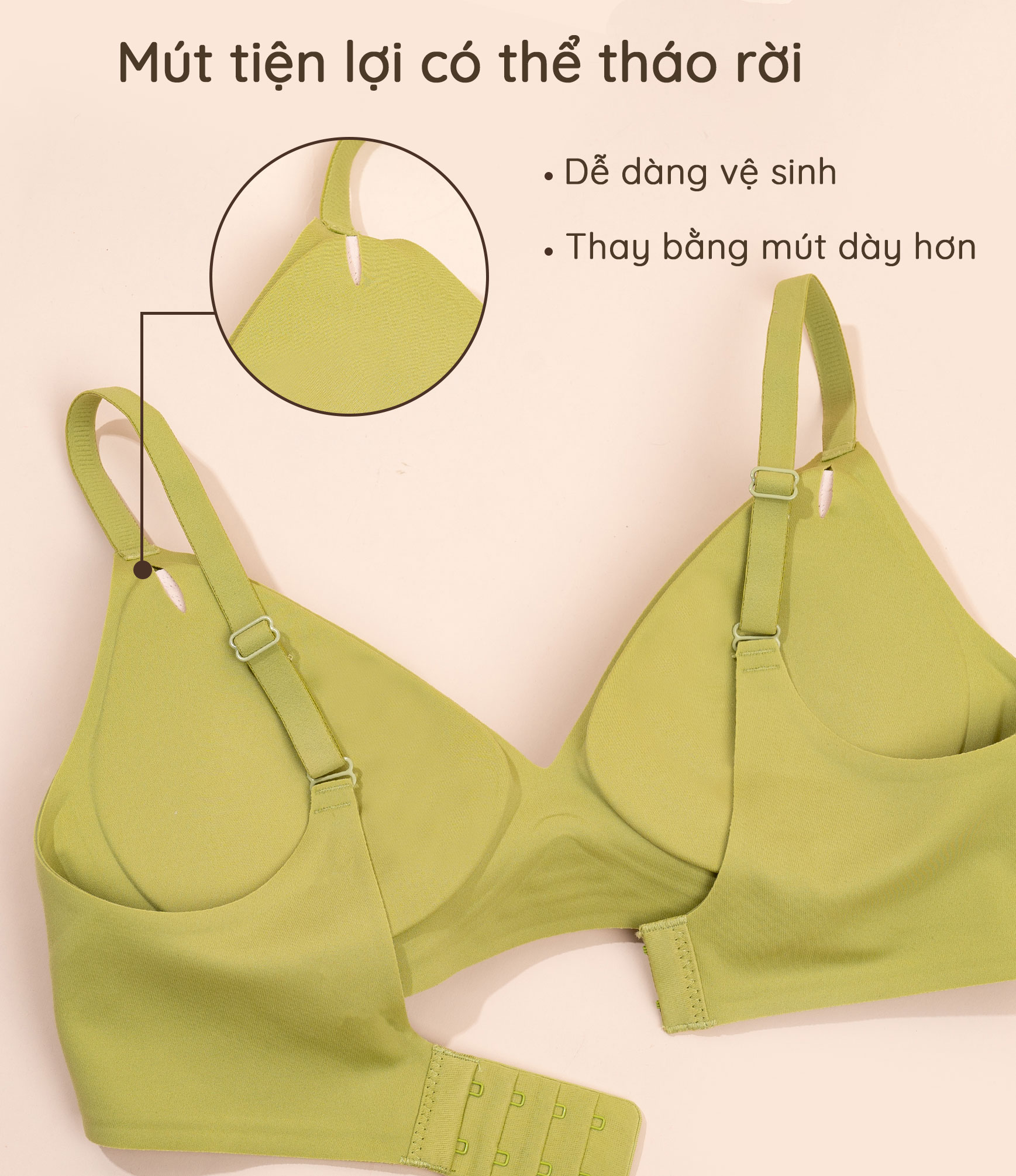– Áo ngực không gọng dạng đúc su, không đường may tinh tế, chắc chắn, không lo lộ viền khi mặc các trang phục bó sát và không gây hằn da.