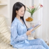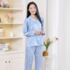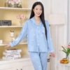 Bộ đồ mặc nhà lụa vân gỗ tay dài quần dài họa tiết bông tuyết trắng H1297