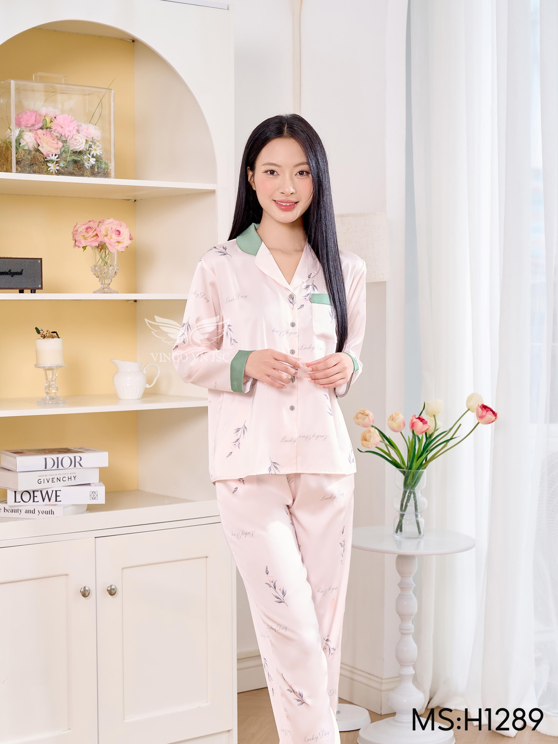 – Set pijama lụa H1289 từ Vingo có thiết kế tay dài dáng có chiết eo nhẹ giúp vóc dáng thon gọn hơn.