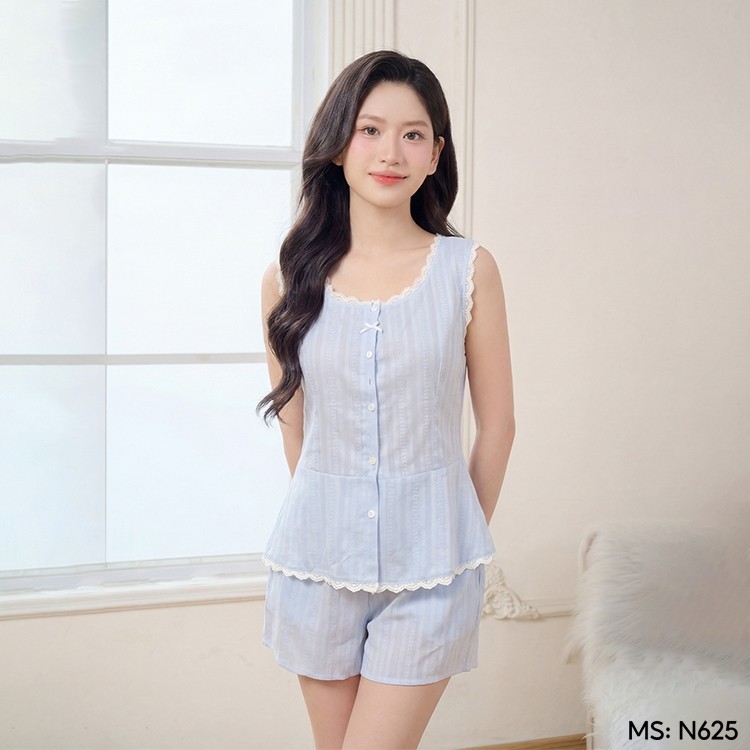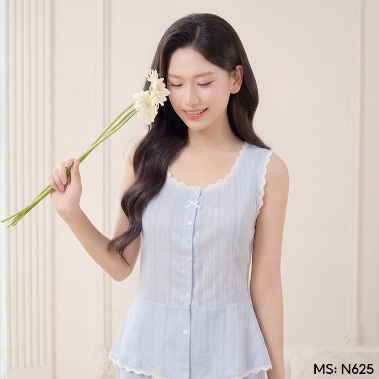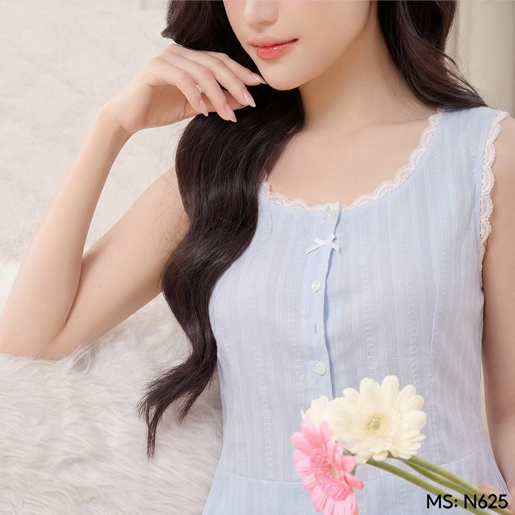 – Bộ hai dây vải Boil thêu phối ren N625 từ VINGO/VINGORIA có thiết kế dáng áo có chiết eo nhẹ vừa trẻ trung vừa sang trọng.