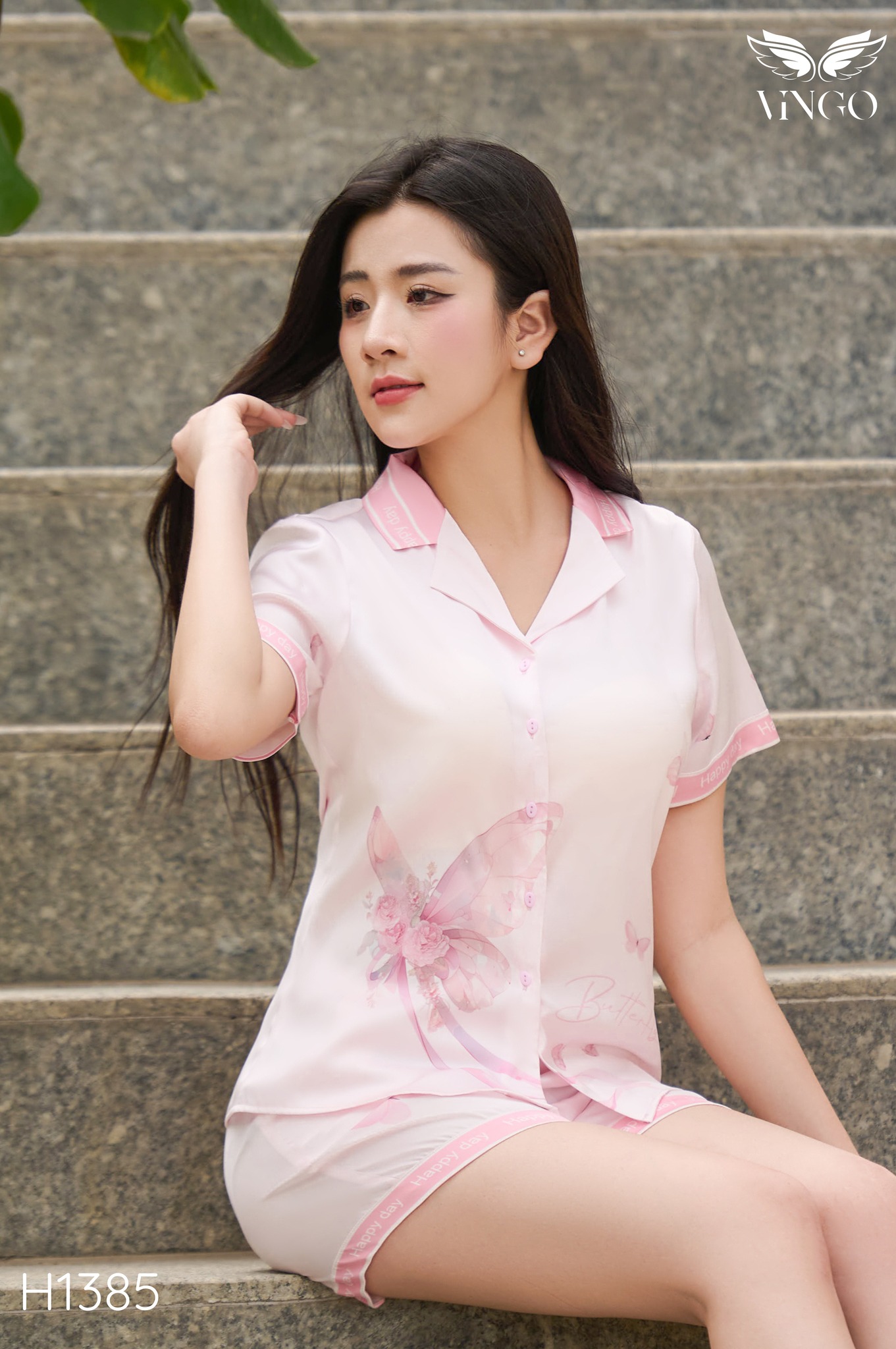 - Tên sản phẩm:Bộ ngủ lụa nữ cao cấp mặc nhà tay ngắn quần cộc CLARA H1385 – BST Ánh Dương