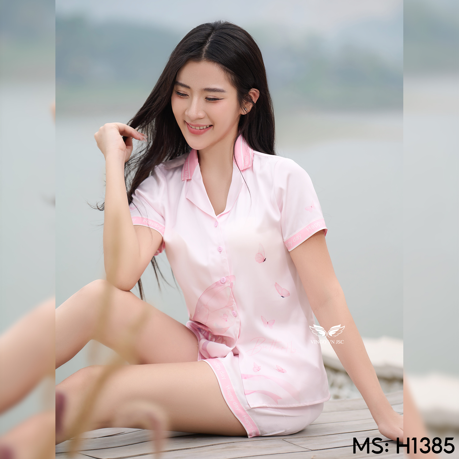 Bộ ngủ lụa nữ cao cấp mặc nhà tay ngắn Clara H1385 – BST Ánh Dương