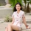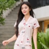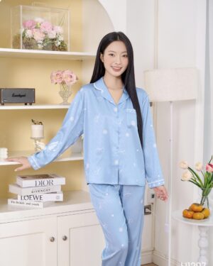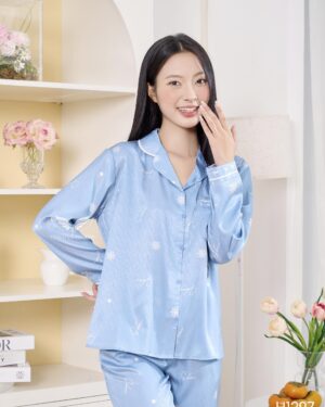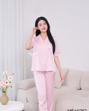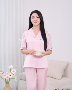 Bộ ngủ lụa nữ cao cấp mặc nhà tay ngắn Little Cherry H1390 – BST Ánh Dương