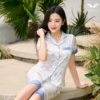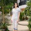 Bộ ngủ lụa nữ cao cấp mặc nhà tay ngắn quần lửng Lila H1380 – BST Ánh Dương
