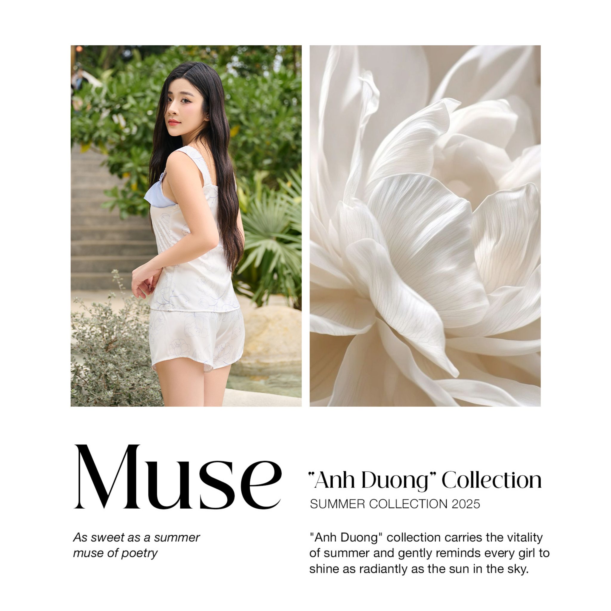 🥀 Dịu dàng như hạt sương sớm đầu hạ, thiết kế “Muse” mang đến một cảm giác vừa tinh khôi, vừa trong trẻo với tone trắng nhã nhặn. Điểm thêm chút cỏ cây mùa hạ với điểm nhấn là phân bèo nhún đầy tinh tế ở cổ áo khiến tổng thể tựa như một bông hoa lan đang bung nở rực rỡ giữa mùa hè.