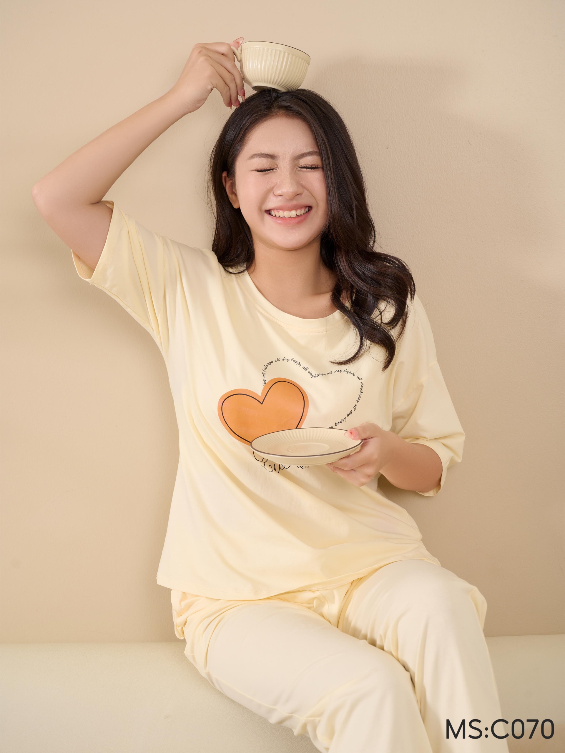- Tên sản phẩm: Bộ ngủ mặc ở nhà chất liệu Cotton tay lửng quần dài C070