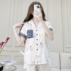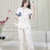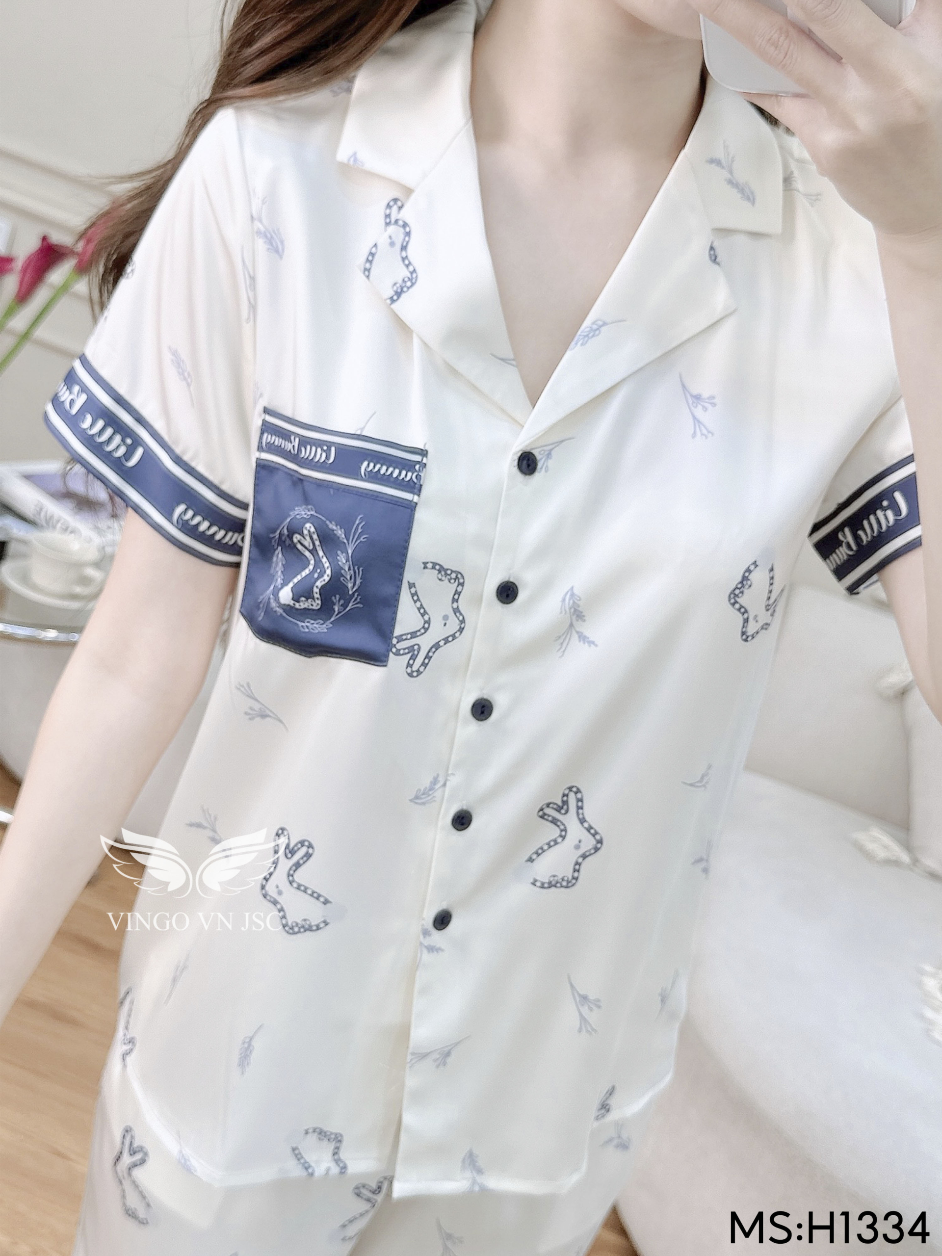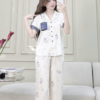 - Tên sản phẩm: Bộ pijama lụa nữ mềm mại họa tiết thỏ cute tay cộc quần dài H1334