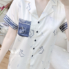 Bộ pijama lụa nữ mềm mại họa tiết thỏ cute tay cộc quần dài H1334