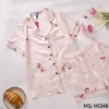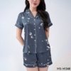 - Tên sản phẩm: Bộ Pijama lụa tay cộc quần cộc họa tiết gấu H1348