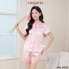 – Bộ Pijama lụa tay cộc quần cộc họa tiết nơ H1412 từ VINGO/VINGORIA có thiết kế dáng áo có chiết eo nhẹ vừa trẻ trung vừa sang trọng.