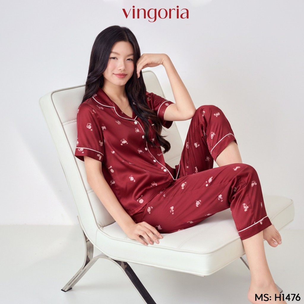 – Bộ Pijama lụa tay cộc quần dài họa tiết gấu nhỏ H1476 từ VINGO/VINGORIA có thiết kế dáng áo có chiết eo nhẹ vừa trẻ trung vừa sang trọng.