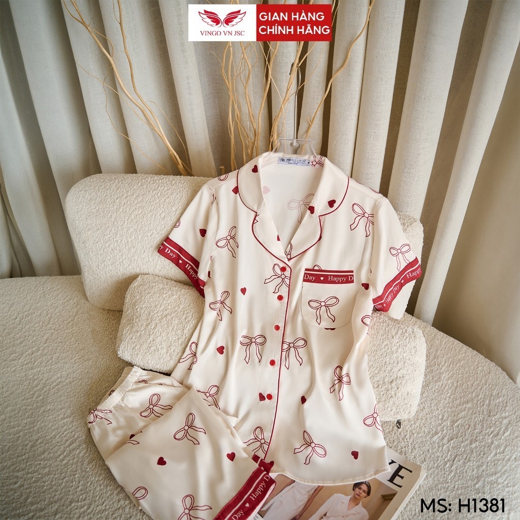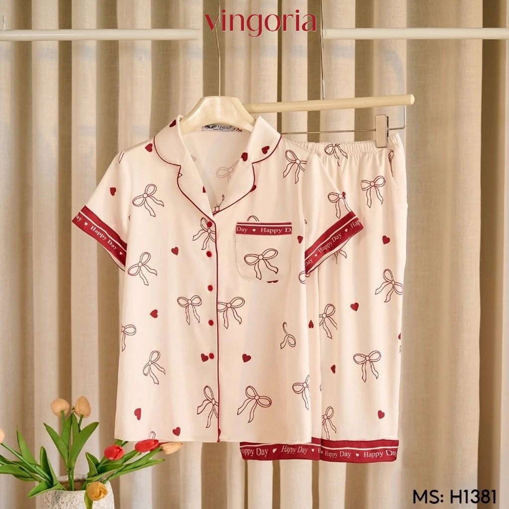 – Bộ Pijama lụa tay cộc quần lửng họa tiết nơ H1381 từ VINGO/VINGORIA có thiết kế dáng áo có chiết eo nhẹ vừa trẻ trung vừa sang trọng.