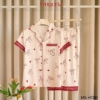Bộ Pijama lụa tay cộc quần lửng họa tiết nơ H1381