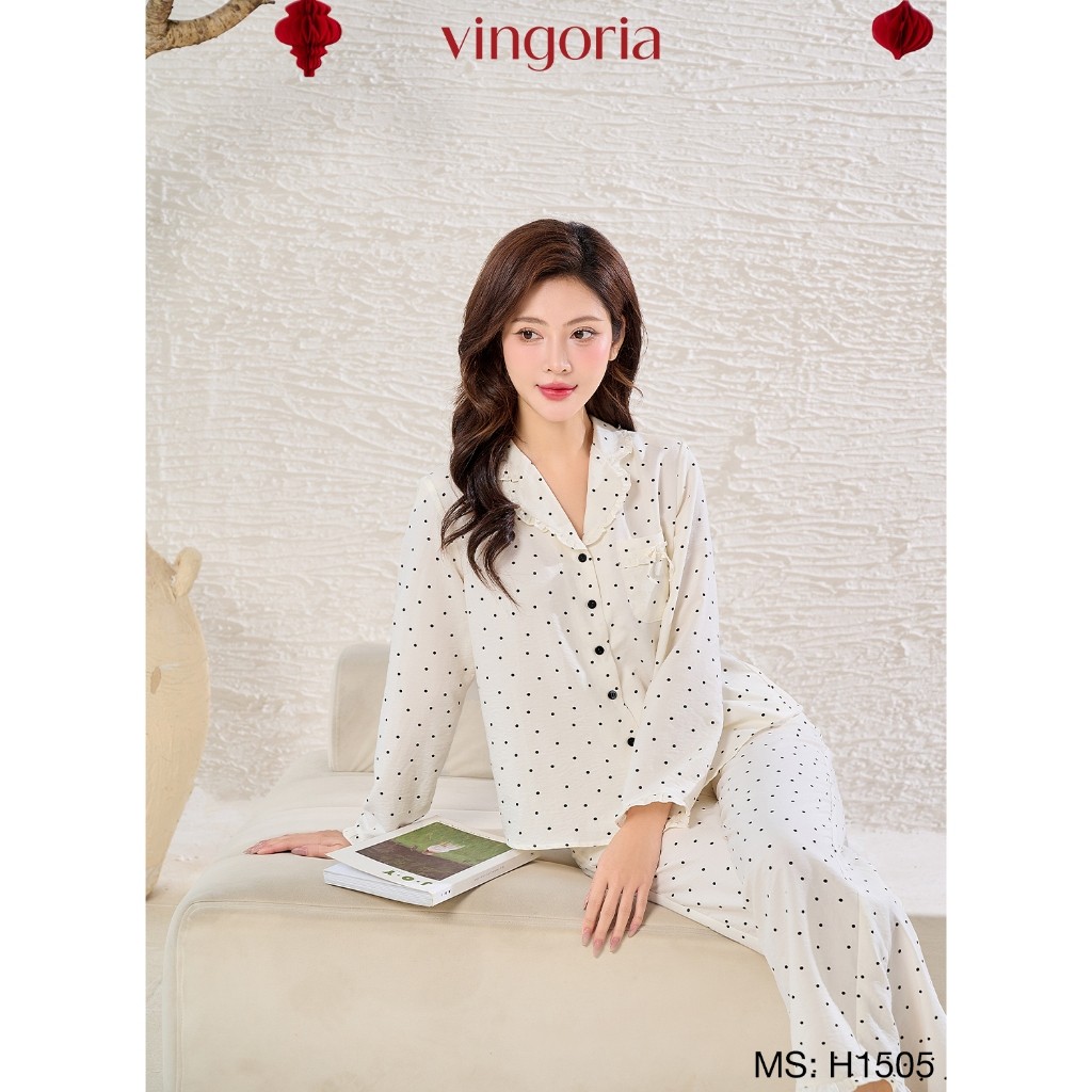 – Bộ Pijama tay dài quần dài dáng suông, phối bèo H1505 từ VINGO/VINGORIA có thiết kế dáng áo có chiết eo nhẹ vừa trẻ trung vừa sang trọng.