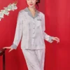 – Bộ đồ ngủ pijama lụa với đường may cuốn chắc chắn.