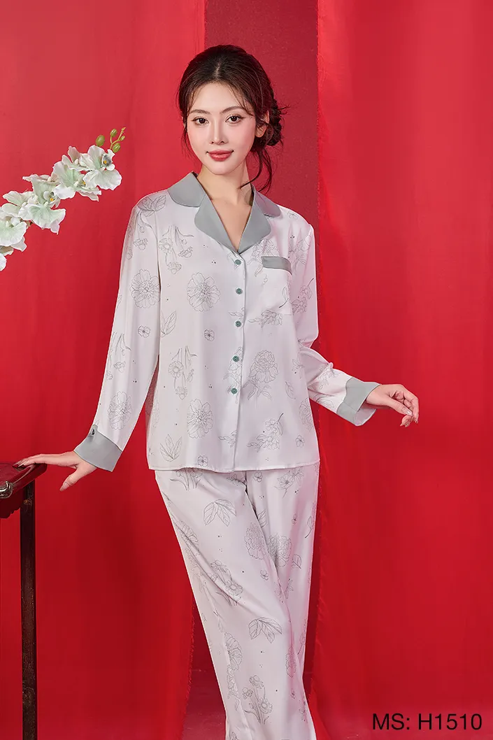 - Tên sản phẩm: Đồ bộ mặc nhà lụa cao cấp tay dài quần H1510