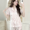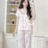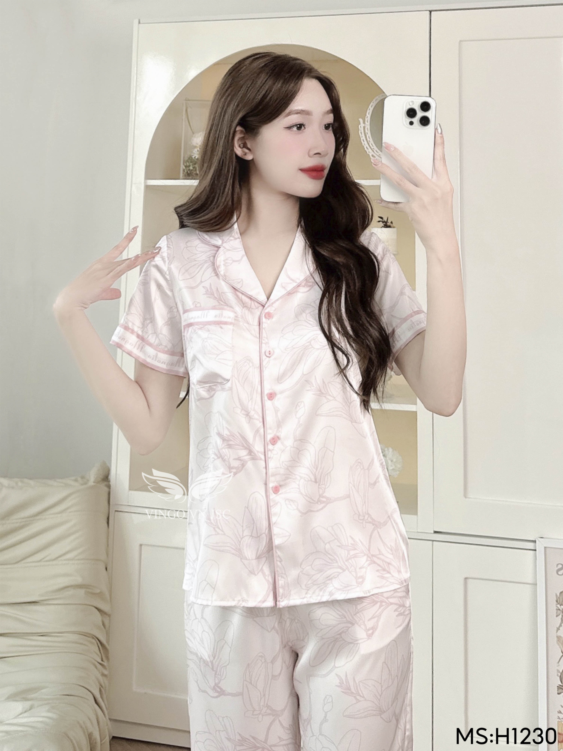 Đồ bộ mặc nhà lụa cao cấp tay cộc quần dài họa tiết hoa mộc lan H1230