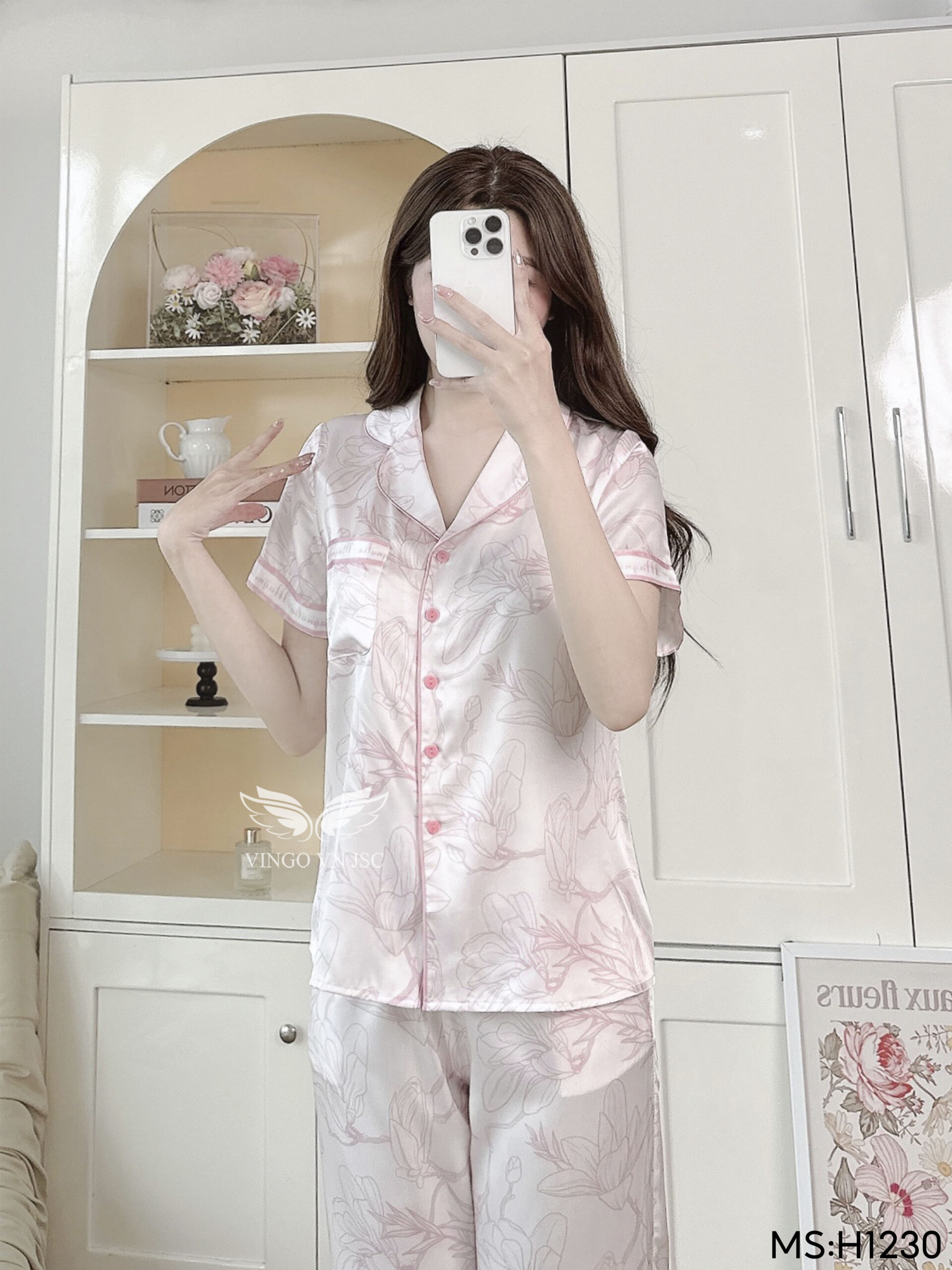 – Set pijama lụa H1230 từ Vingo có thiết kế tay dài dáng có chiết eo nhẹ giúp vóc dáng thon gọn hơn.