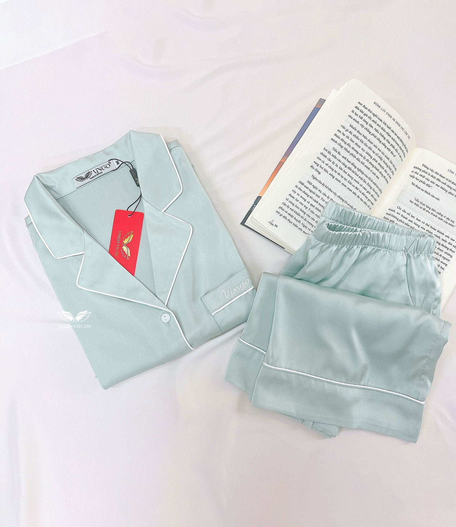– Set pijama lụa H1146 từ Vingo có thiết kế tay ngắn chiết eo nhẹ.