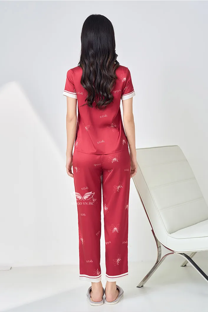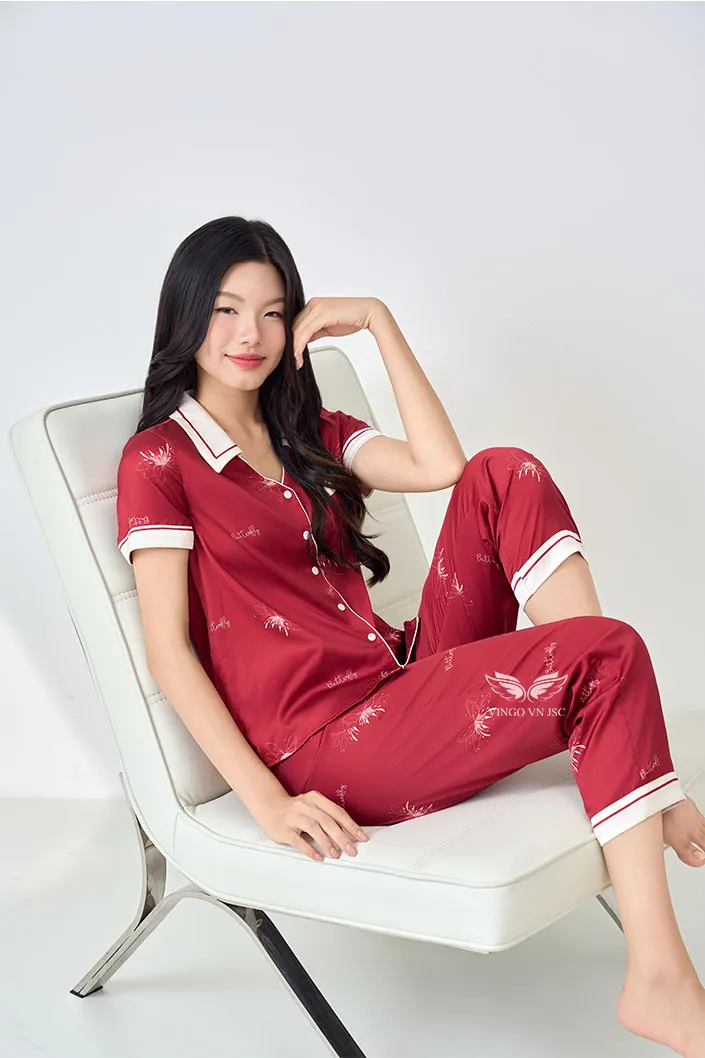 Đồ bộ mặc nhà lụa cao cấp tay cộc quần dài H1420