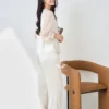 – Quần dáng dài, ống đứng, gập gấu nhẹ ở chân giúp tổng thể trang phục thêm gọn gàng, hiện đại.