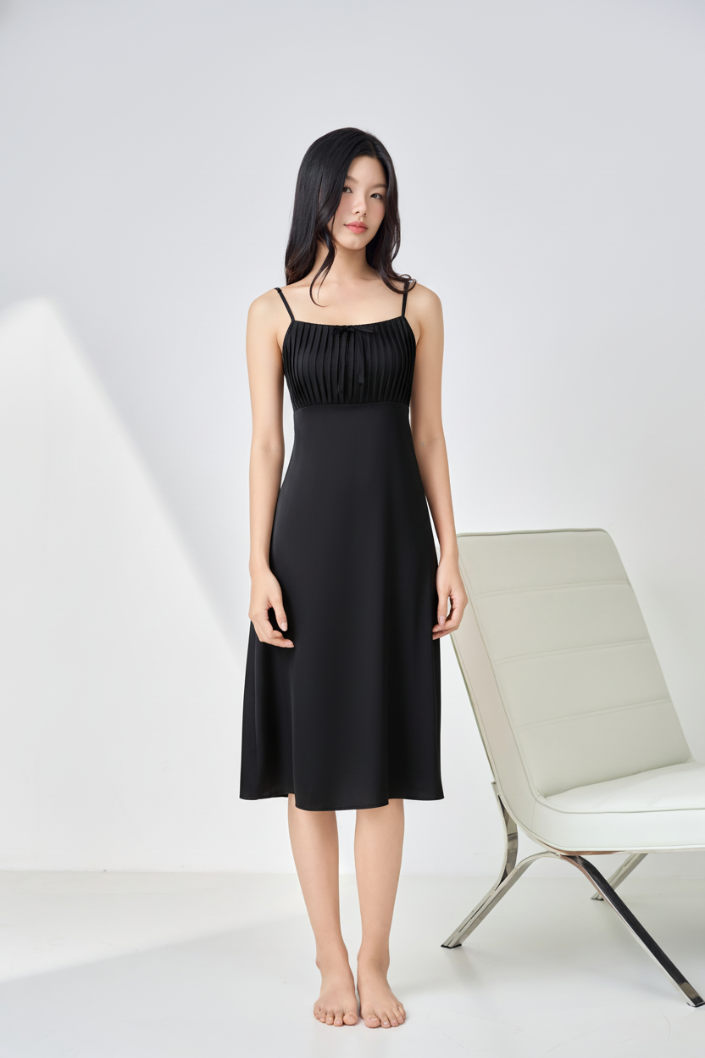 • Váy ngủ N591 dáng liền thân, suông, mặc lên tự khắc nhìn người thon gọn hơn hẳn, giấu được vòng 2 bánh mì do tăng cân, ngồi văn phòng nhiều.