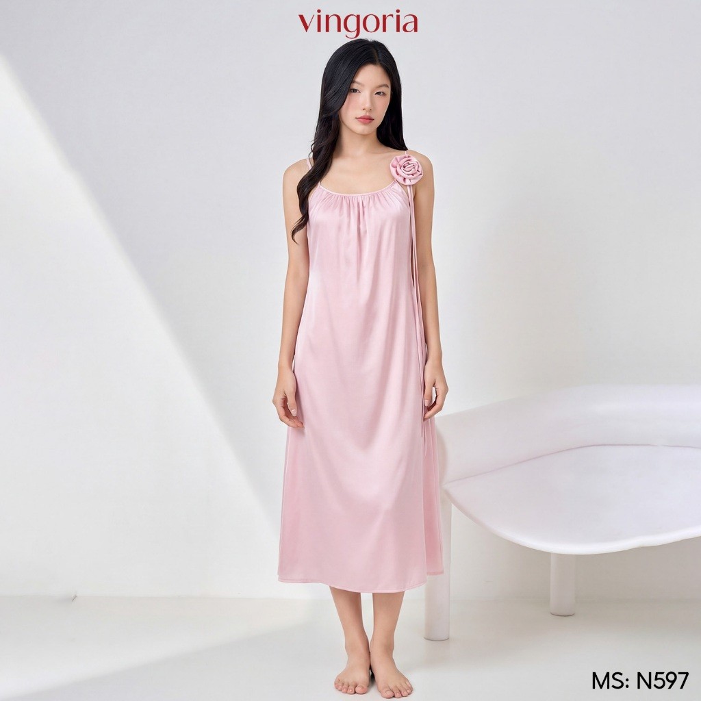 – Váy ngủ lụa phối bèo nhún N597 từ VINGO/VINGORIA có thiết kế dáng áo có chiết eo nhẹ vừa trẻ trung vừa sang trọng.