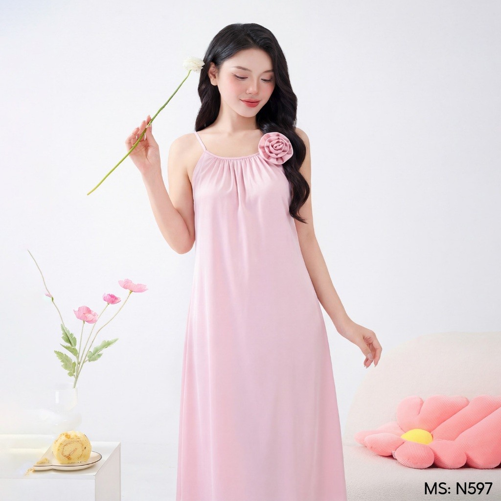 - Tên sản phẩm: Váy ngủ lụa phối bèo nhún N597