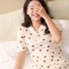 Váy ngủ thun tăm họa tiết gấu cute thiết kế có cổ N542