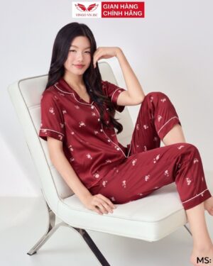 Bộ Pijama lụa tay cộc quần lửng họa tiết nơ H1381