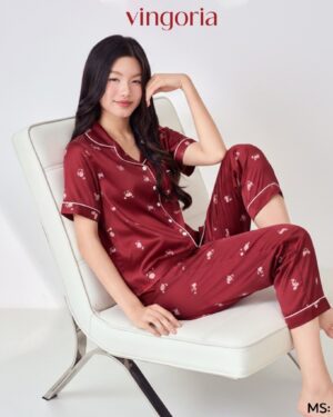 Bộ Pijama Đoan Xuân tay cộc quần dài lụa dáng suông H1519
