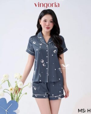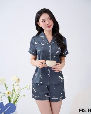 Bộ Pijama lụa tay cộc quần cộc nhiều họa tiết H1421