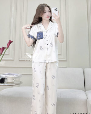 Đồ bộ mặc nhà lụa cao cấp tay dài quần dài Bunny H1301
