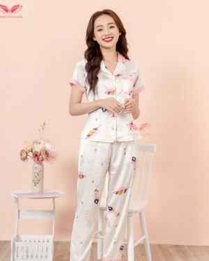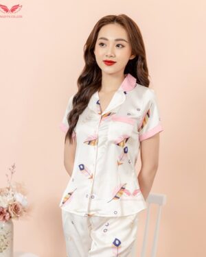 Đồ ngủ nữ pijama lụa ngắn tay cao cấp H234