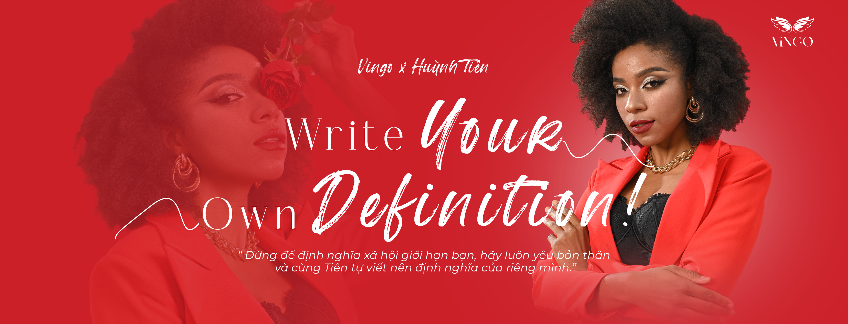Để lan tỏa mạnh mẽ hơn nữa năng lượng tích cực ấy, 8/3 này, Huỳnh Tiên kết hợp với Vingo trong vai trò đại sứ chiến dịch “Write your own definition” nhằm truyền tải và thúc đẩy phụ nữ yêu thương bản thân mình, tự do viết nên định nghĩa của riêng mình.